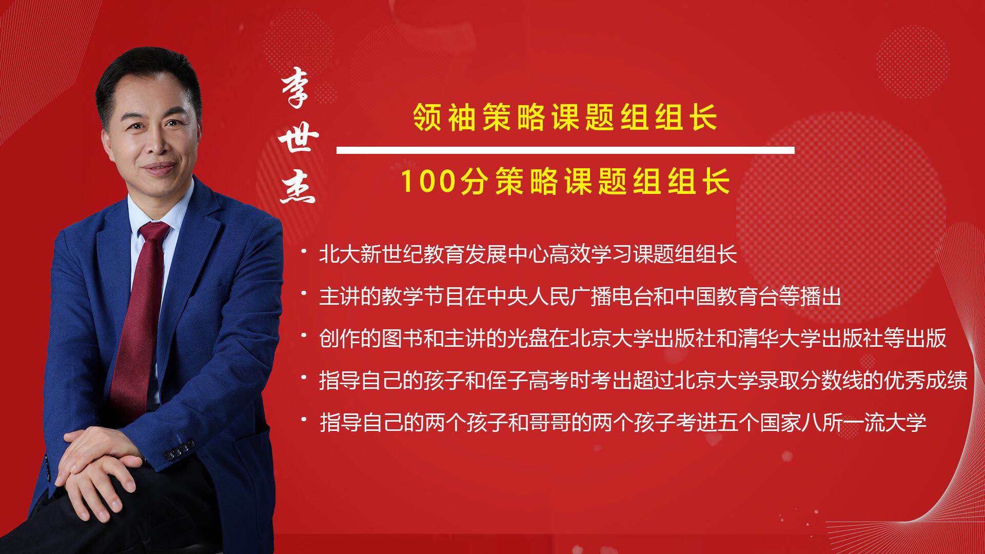 成功有捷径,只有十个字!哪好到哪去,谁好跟谁学! 要上好大学,就找李世杰!跟着李世杰,长大去留学! 听到这些大家赞美我的话,我觉得身上的担子更重了,责任更大了,使命更崇高了——我把这些话作为大家对我一生的更高要求和不断激励,引导全国更多中小学生朋友早日实现“学习过程更快乐,学习成绩更优秀,发展后劲更充足,人人能上好大学,人人留学好大学,人人能够成大才,人人能够大发展,人人做出大贡献”的学习梦! ——北大新世纪教育发展中心高效学习课题首席研究员,《100分策略通北大》全国指导中心主任 李世杰 其实,中国政府多年前就开始实施 教育优先发展战略了!谁家认真落实了,谁家发展后劲更足了!谁家没认真落实,甚至没落实,谁家发展后劲乏力了! 很多人对住几十年的一套房子,舍得花几百万元,甚至几千万元! 很多人对开几年的一辆车子,舍得花几十万元,甚至几百万元! 但是,很多人对培养能给全家带来新希望、能让全家几代人受益的一个好孩子,却舍不得像买房子、买车子一样上心! 难道自己精心孕育的孩子,还不如人家建造的一套房子?还不如人家制造的一辆车子? 品位决定选择!选择决定结果!习惯决定命运!思路决定出路!过去决定现在!现在决定未来!